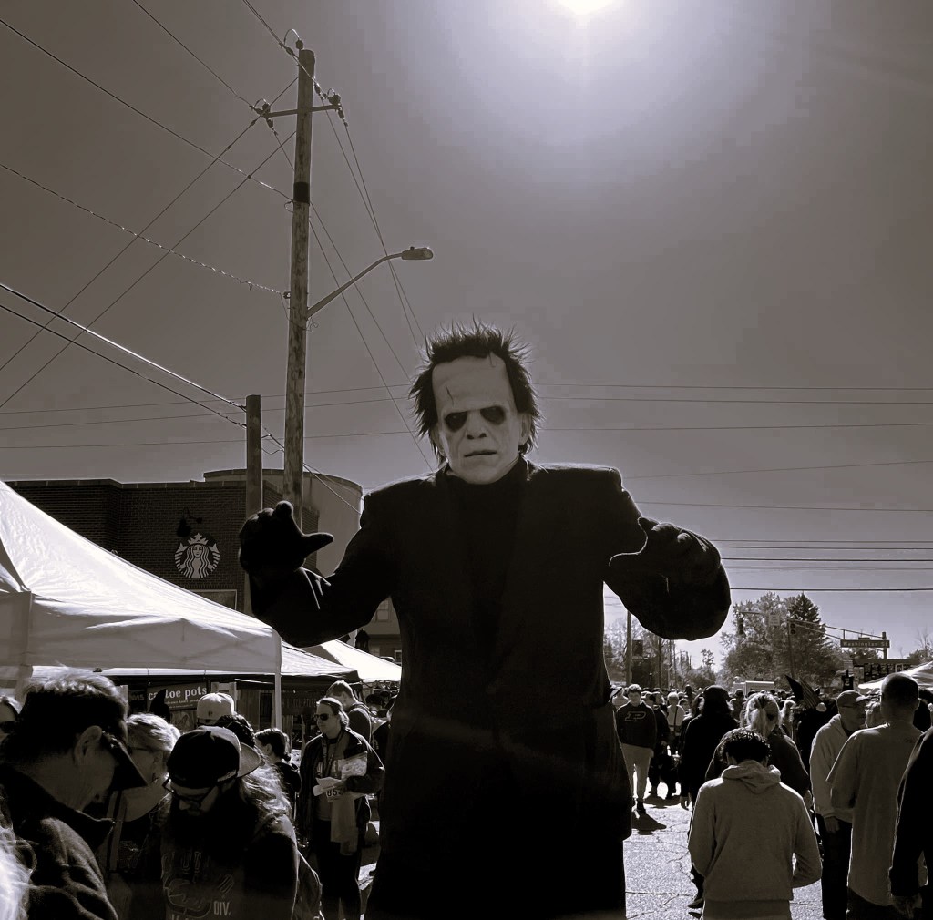 I’ve mentioned before that my other great lifelong love outside of TTRPGs has always been Halloween. As a child I loved the chance to dress up and pretend to be different characters. During my senior year of high school in 1988 I volunteered at the Cobblestone Arts Center Haunted House, in Rochester, NY. It was during this time that I learned to walk on stilts and have portrayed a 9′ version of Frankenstein’s monster for every year since.