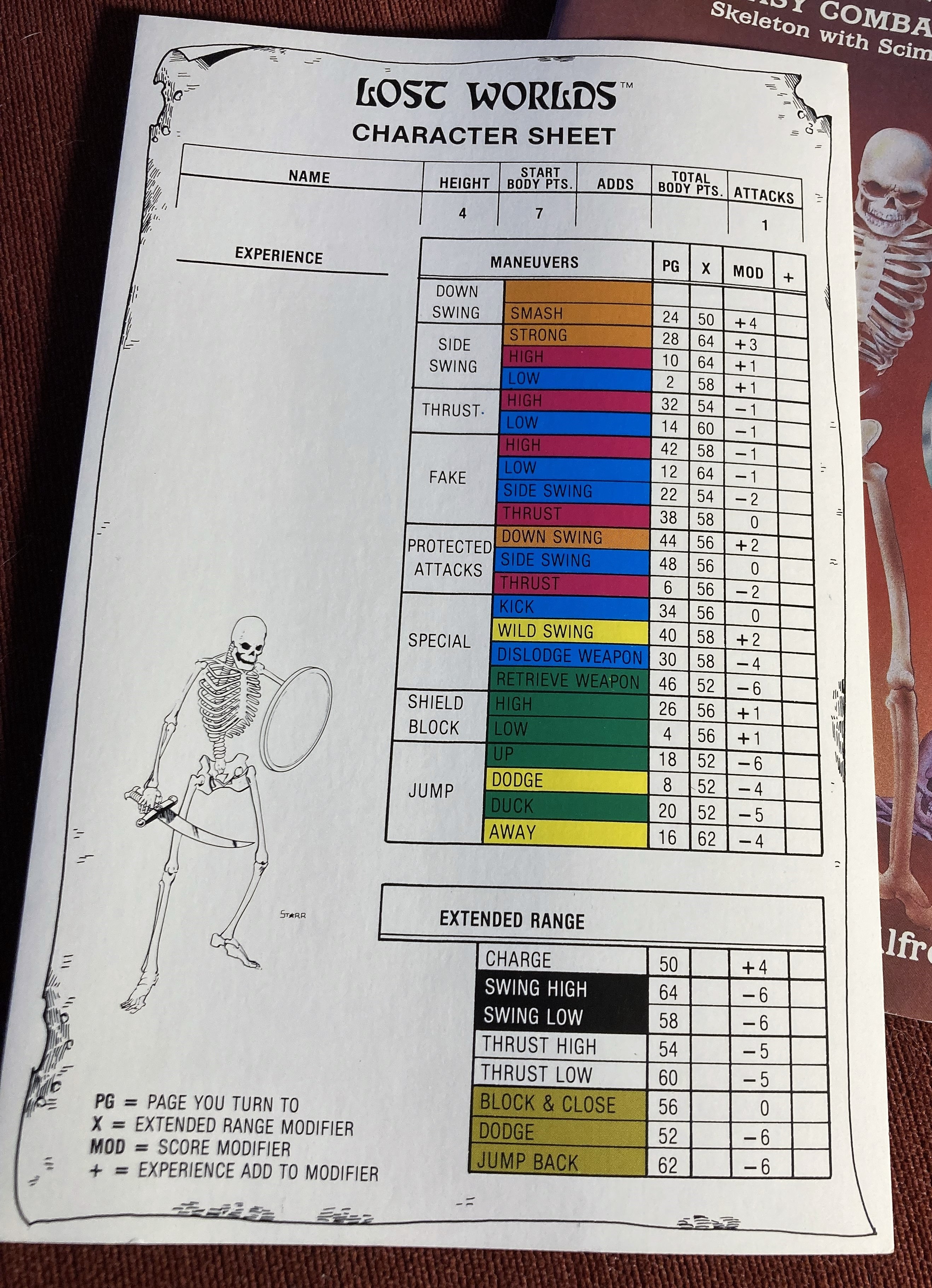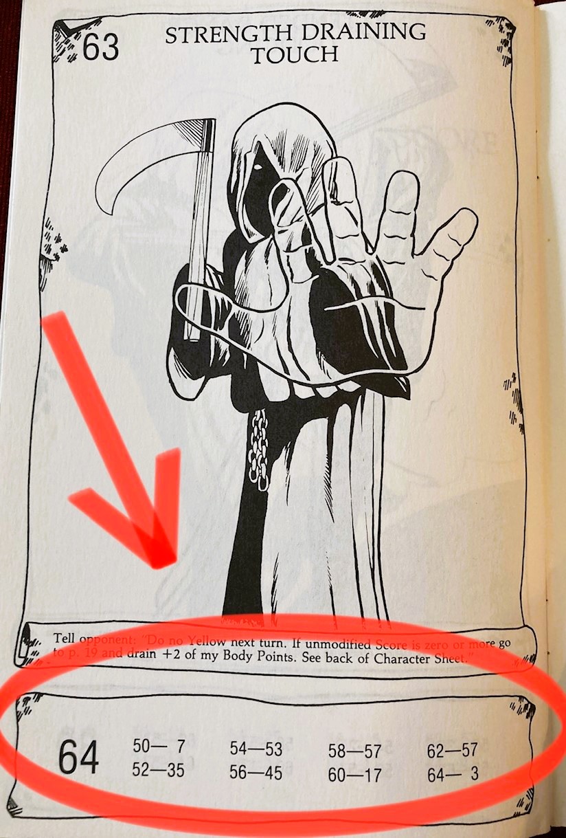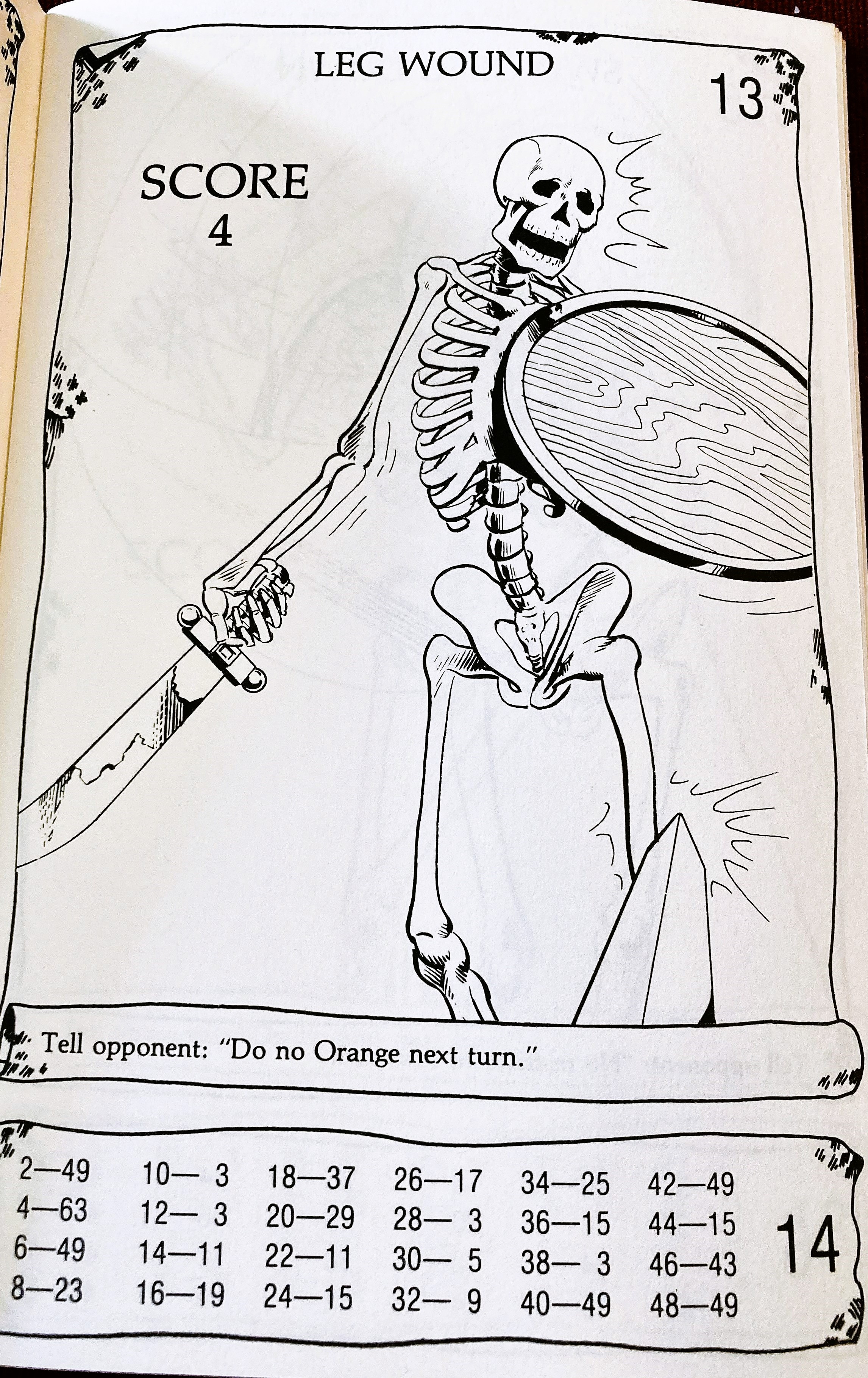 At the start of play, you would remove your character sheet and then pass the booklet itself to your opponent. As the game commenced, you would turn to a pre-determined page in the book. The picture on the starting page would essentially give you a first-person view of your opponent’s character squaring off and ready to fight.