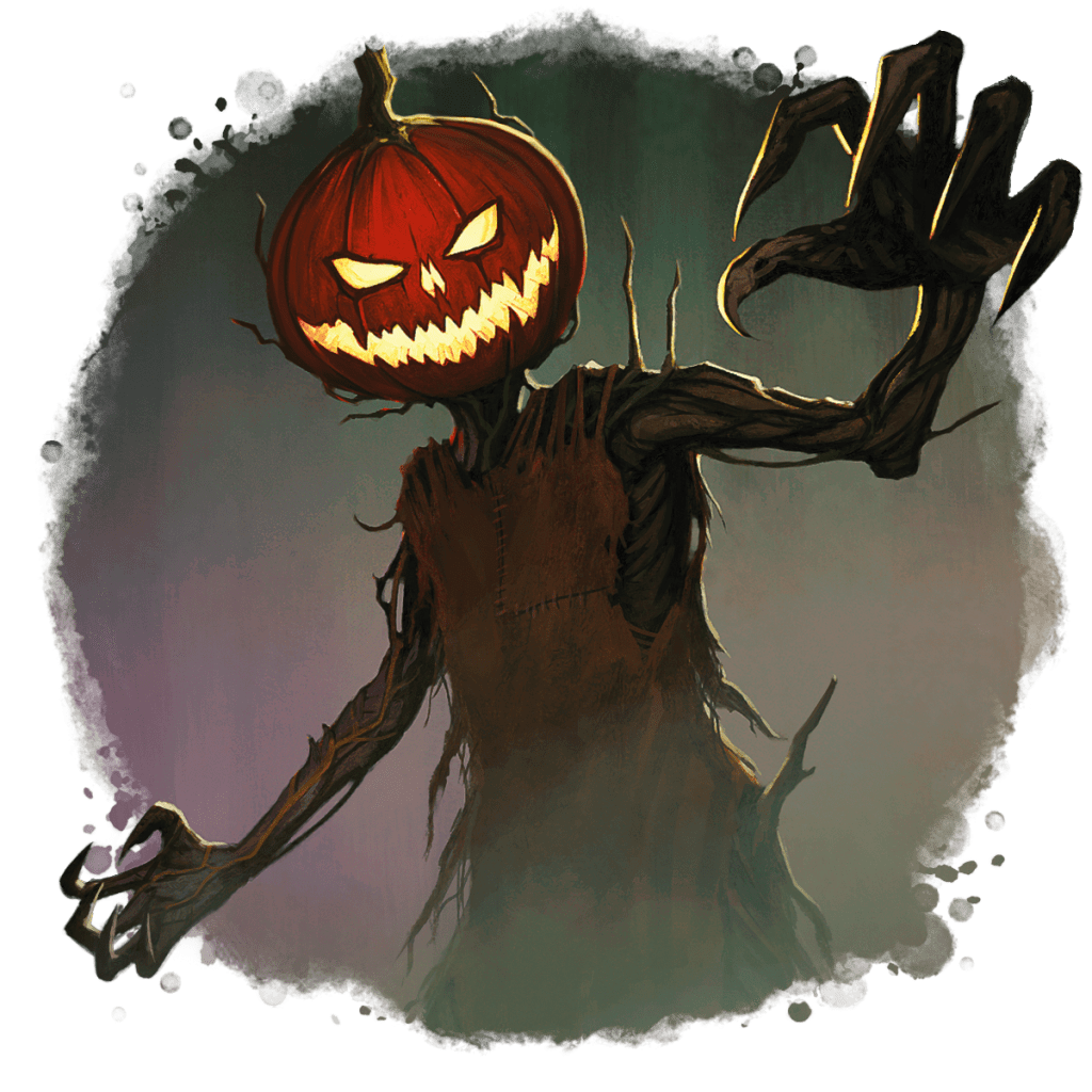 Fear Aura: The Pumpkin Fiend’s unnatural presence emits a 20’ aura of fear, causing players to make Wisdom saving throws or become frightened. Frightened characters have disadvantage on attacks and ability checks while the aura is active.